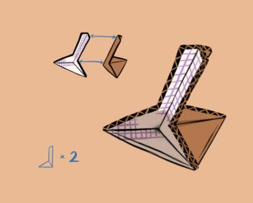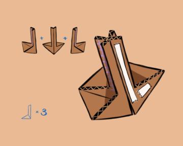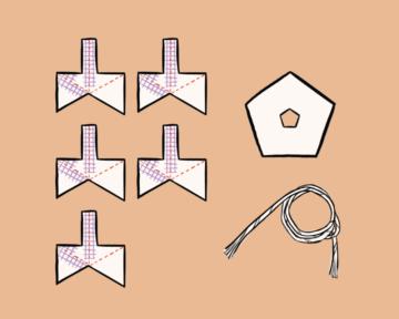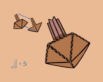 Fold part A so the bottom forms an open pyramid, and firmly press the adhesive into place. Repeat for all 5 part A pieces.